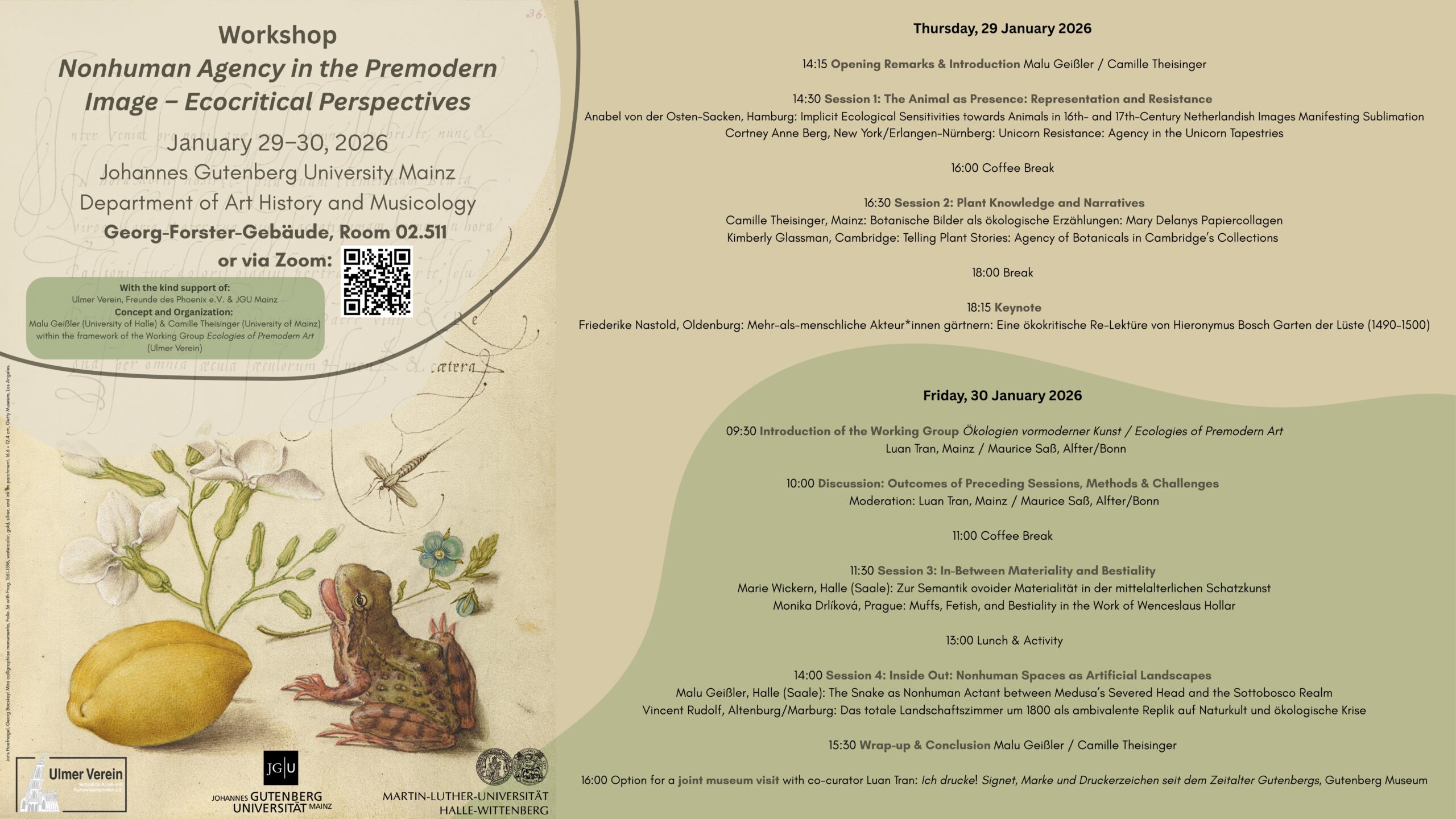Der Verein fördert den Workshop Nonhuman Agency im vormodernen Bild - ökokritische Perspektiven (29.-30. Januar 2026 an der JGU)